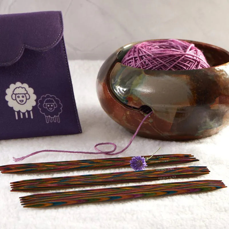 The KnitPro Symfonie Double-Pointed Knitting Needle Sets are available in two lengths: 15cm (6") and 20cm (8"). These needles are perfect for a variety of knit-in-the-round projects. They come packaged in a charming purple fabric case with a scalloped edge and adorable sheep icons, making it not only beautiful but also versatile for multiple uses. A favourite among knitters, the Symfonie Double-Pointed Needles combine elegance with exceptional strength. With their laminated surface and finely honed tips, they provide hours of enjoyable knitting.