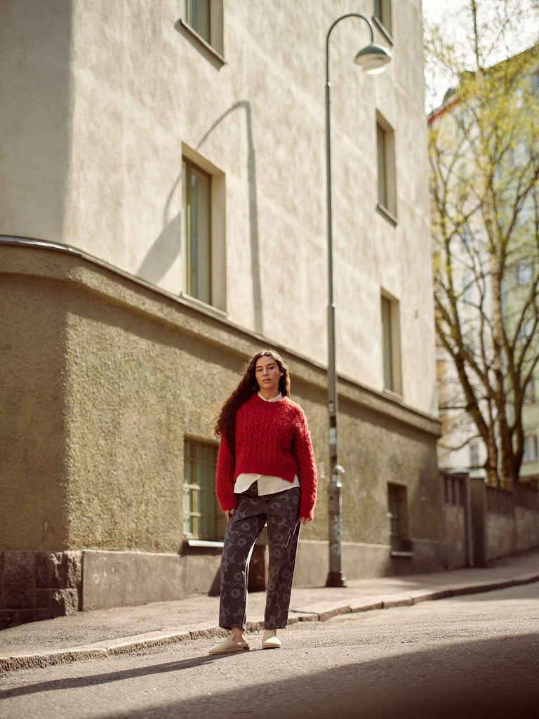 Laine 26, Crossing Paths, takes you to the bohemian Kallio district of Helsinki, Finland. We walk the streets of this unique, creative neighbourhood, stop by at a local café and pick up flowers from the marketplace. The issue features twelve gorgeous knits to complete your autumn outfits, showcasing luscious cables, intriguing textures, and ingenious stripe patterns, as well as meditative stockinette stitch and simple colourwork. This issue truly offers something for everyone.